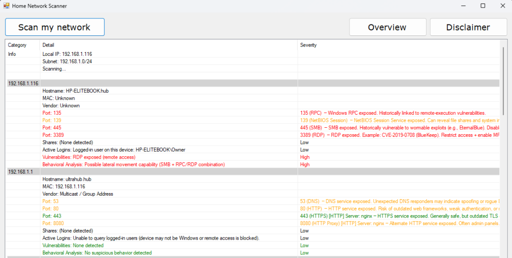 Home Network Scanner – This application scans your local home network and provides a security-focused overview of all detected devices.