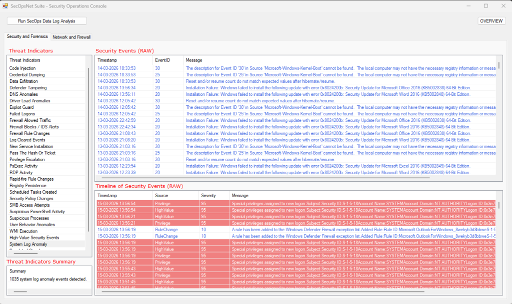 scheduled task modifications, and Defender alerts. - System Log Anomalies