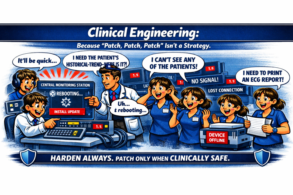 In mainstream IT, “patch, patch, patch” is treated as gospel. It’s simple, catchy, and usually correct. But when this advice is applied to regulated medical devices, it becomes misleading and in many cases, non‑compliant with global standards.